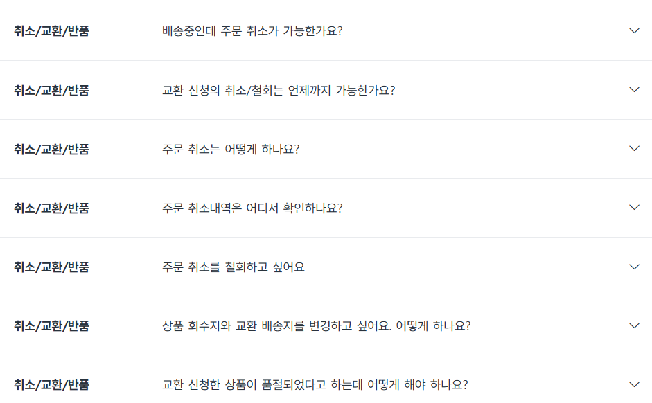- 교환은 원칙적으로 '반품 후 재구매' 방식! (불량일 경우만 예외적으로 교환!)