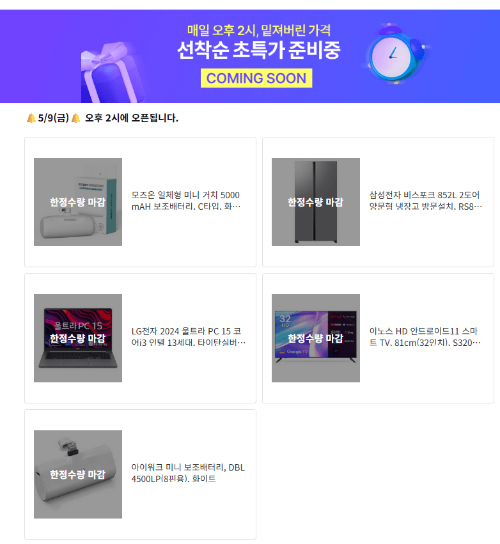 눈여겨 둔 상품이 있다면 매일 매일 확인해 보시고 초특가로 기회를 잡으시면 완전 이득입니다