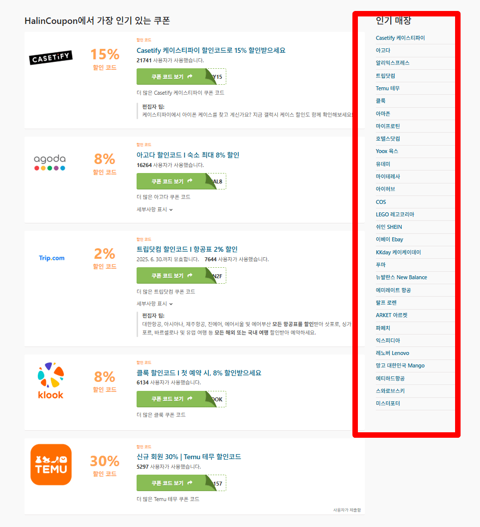 A. HalinCoupon은 매일 새로운 할인코드를 수집하고 테스트하여 업데이트합니다. 유효하지 않은 코드는 제거되므로 안심하고 사용하세요.