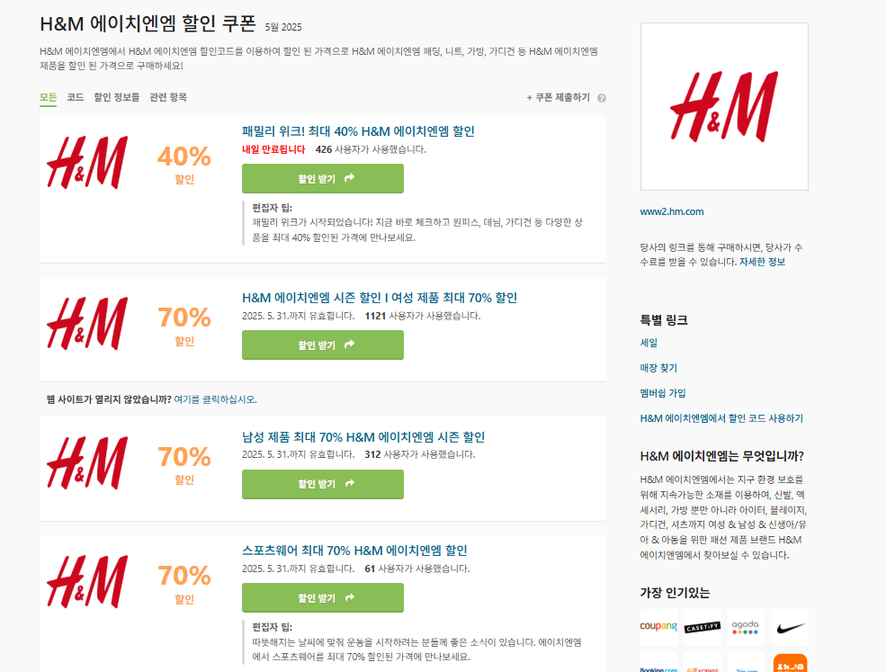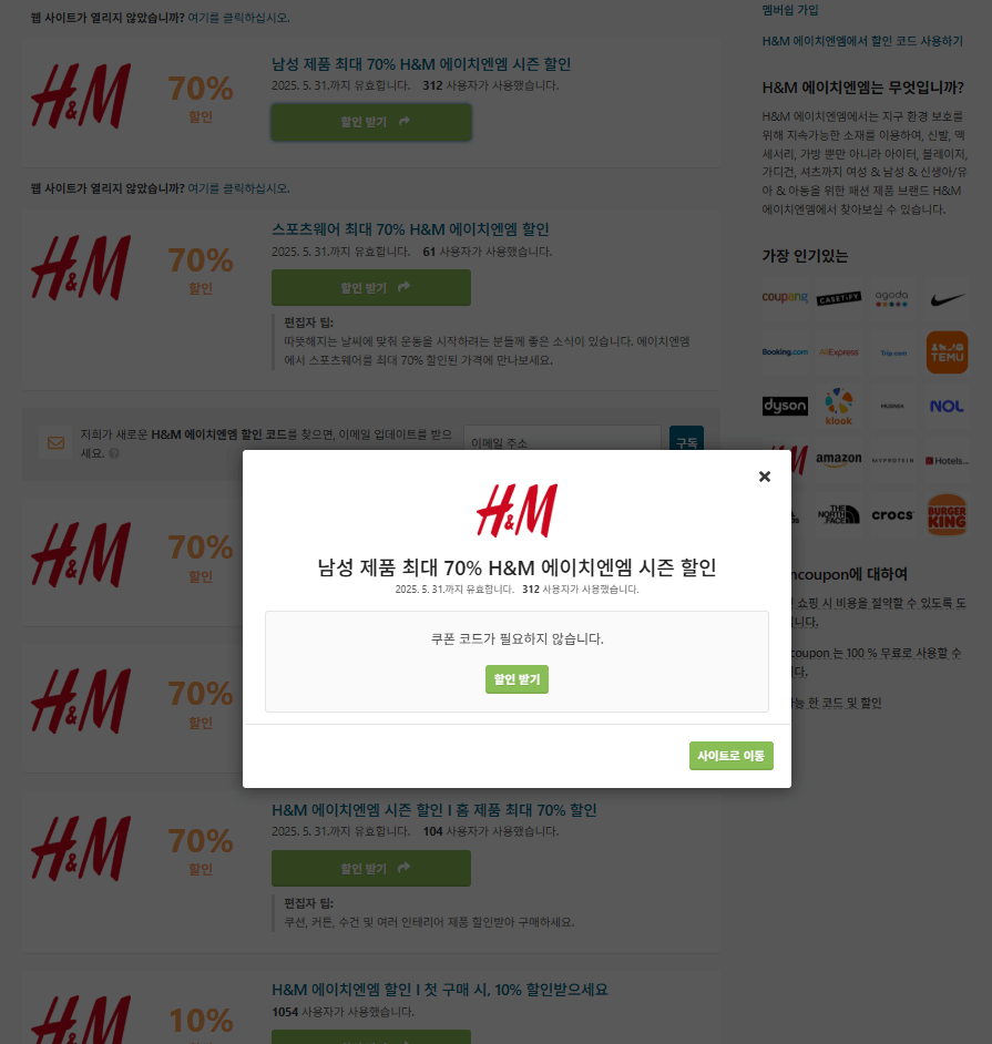 할인쿠폰 사이트에서는 글로벌 쇼핑몰부터 국내 인기몰까지 폭넓게 다룹니다.