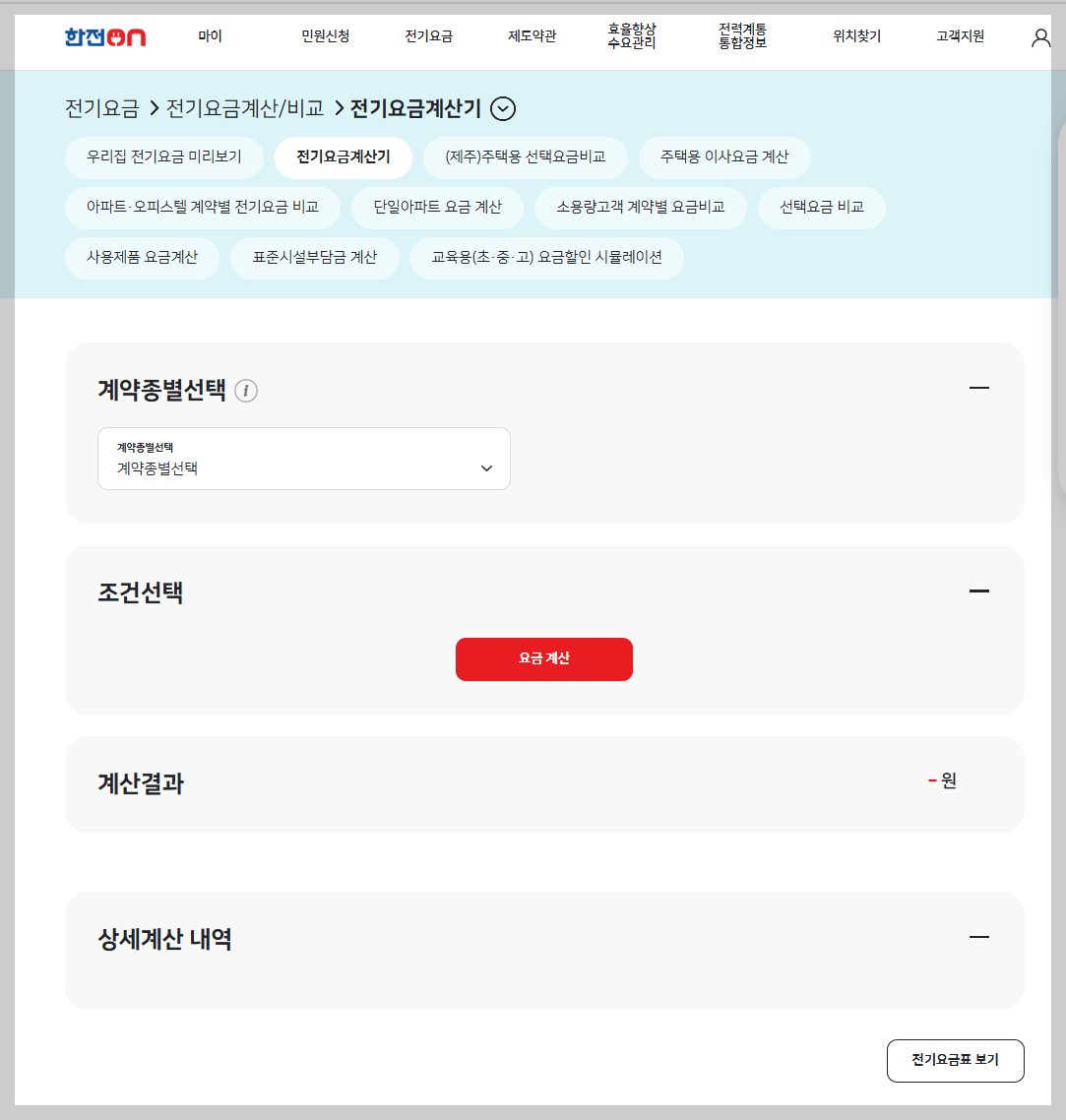 - '요금계산 및 비교' 메뉴를 클릭합니다.