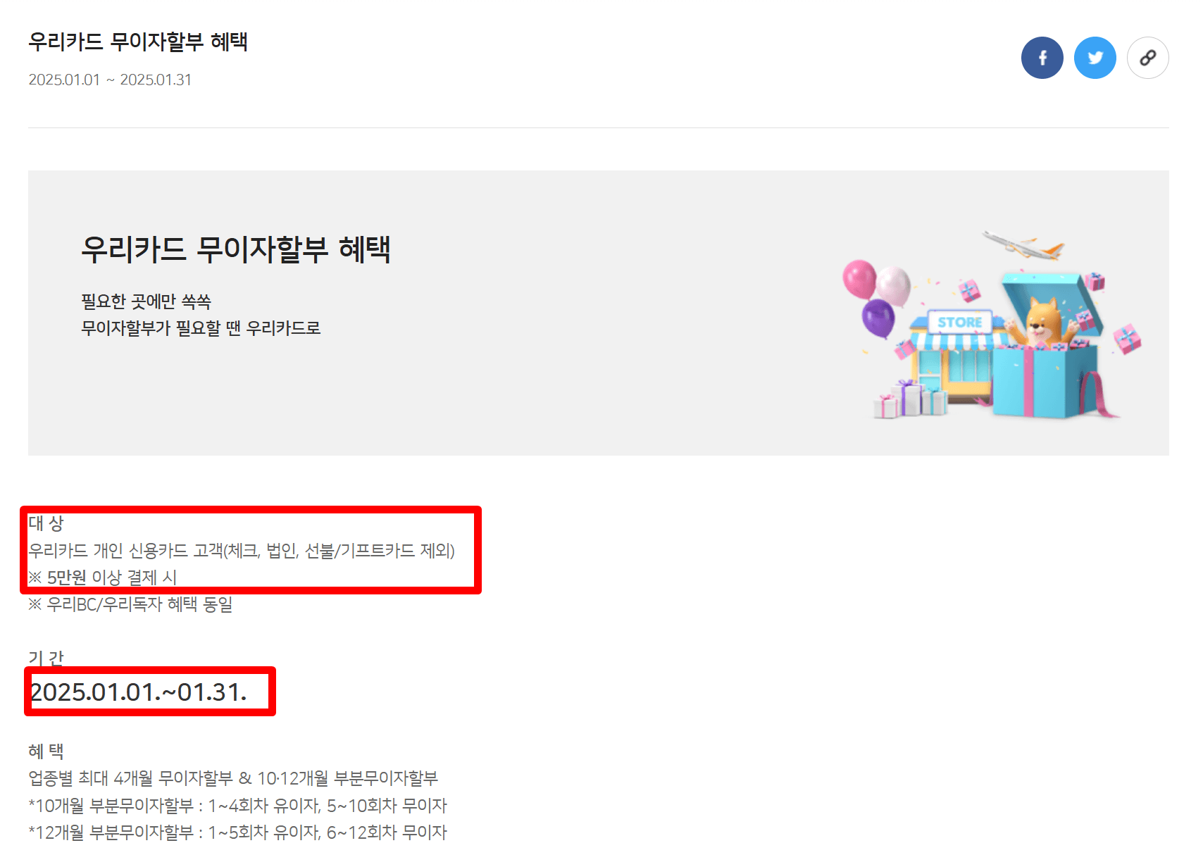 - 2~5개월 무이자/ 6개월 이상은 부분무이자로 진행되오니 체크하실 필요가 있습니다